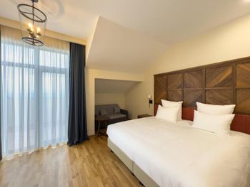 Очень интересный новый отель, в шикарном месте. Красивый вид, красивый пейзаж. Очень тихо, в дали от населенного пункта, но для нас это большой плюс. Номера просторные и уютные. Персонал приветливый и заботливый, завтрак разнообразный и очень вкусный. Жаль, что остановились только на 1 ночь, хотелось продлить удовольствие нахождения в этом отеле. Обязательно вернемся.