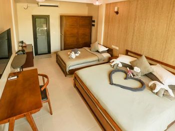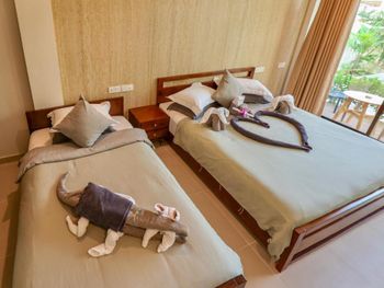 Очень понравилось наше пребывание в отеле, все четко организовано. Трансфер мы заказали и нас встретили и отвезли на скоростной лодке за час до острова. Стоит 35$ с человека. Мы брали завтрак и обед. Но можно было поменять на ужин. В номере одна огромная кровать 2х спальня и 1,5. Очень удобные, постельное белье меняли каждые 2 дня. Уборка номера каждый день. Замена полотенец. Персонал замечательный, доброжелательный и готов всегда помочь. Расположение отеля очень понравилось. Он находится на тихой улице, рядом с пляжем Sanset. Наш любимый пляж. Дойти до него можно за 7 минут. Обеды очень вкусные и порции большие. Всегда были фрукты и напиток. Иногда свежевыжатый сок манго и микс. Папайя и арбузы каждый день. Выражаю огромную благодарность всему коллективу отеля! Хочу вернуться к вам еще)))