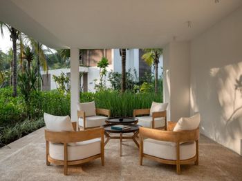 Очень приятный, спокойный и уютный отель, мы снимали виллу с бассейном. Интерьеры, размеры комнат, декор (дерево с подсветкой в лаунж зоне) все очень понравилось. Удобный выход к бассейну и пляжу. Все очень чисто. Сервис на высоте. Прекрасные виды на океан. Разнообразное, вкусное и полезное меню в рксторане. Быстрое обсоуживание и отзывчивый персонал. Дружелюбные гости отеля. великолепный спа салон и балийский массаж. Вкусные коктели от бармена.