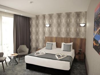 Требовался номер на одну ночь из-за переноса рейса. Брали из-за низкой цены и разумной удаленности от аэропорта. Ну и сыграло роль наличие номеров. Реально отель на одну ночь. Есть три плюса: нормальный персонал, неплохой завтрак и просто прекрасное кафе напротив входа в отель. Настоящая вкусная национальная турецкая еда.
