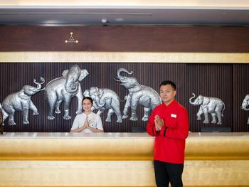 Персонал на ресепшн практически не разговаривает на английском, на просьбу принести дополнительное одеяло (one more blanket), три человека пытались понять что мне от них нужно. Объясню: вместно номера twin нас поселили в single с одной кроватью (две девушки) и одеяло было только одно. Второе принесли после многочисленных объяснений и еще попросили за это 50 батт! Скажу сразу, платить мы не стали, но сам факт - отель позиционирует себя как 5 звезд и недопустимо такое поведение от персонала!