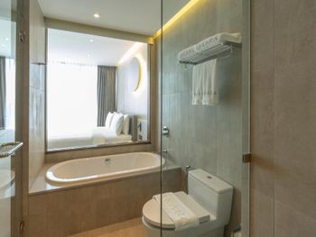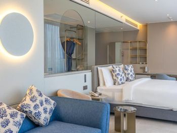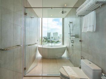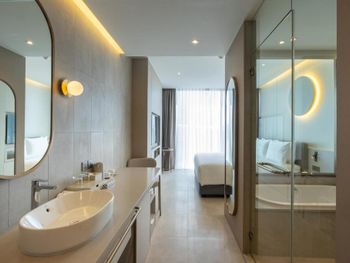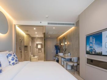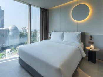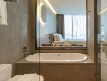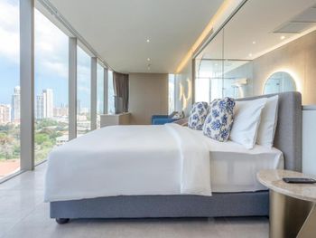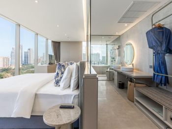 У отеля отличное месторасположение с точки зрения доступности и наличия рядом огромного ТК Terminal 21, рынки, кафе в пешей доступности. Напротив Tops и 7Eleven - удобно. В целом приятная архитектура здания и дизайн номеров. Отличный вид из окна при правильном выборе номера. Необычный формат бассейна. С одной стороны очень инстаграммный и визуально красивый, но не хватает глубины и очень холодная вода... Странное впечатление!