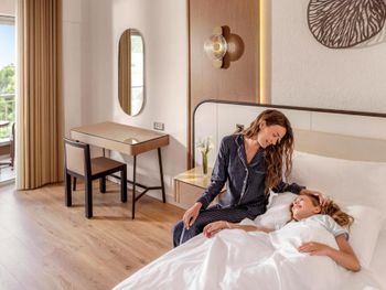 Наличие подогреваемого бассейна, предоставление двух детских кроваток в номер, бесплатный мини бар.