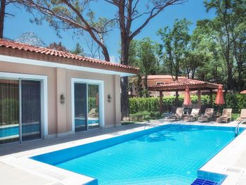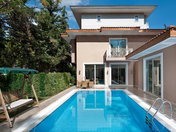 Комплекс Akka Residence с роскошными виллами с собственным открытым бассейном, сауной и мини-кухней расположен на берегу моря курортного поселка Бельдиби в регионе Кемер.