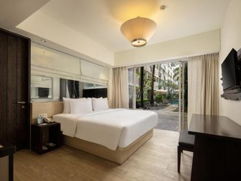 A selection of Indonesian, Asian and Western dishes are on offer at Arugula Kitchen. Guests can enjoy a variety of signature cocktails and light bites at the Rooftop Bar and Lounge.