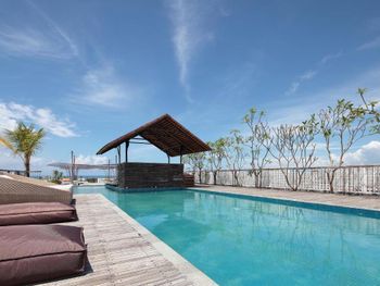 Месторасположение хорошее-рядом магазины, аптеки, шмотки. Отель не первой свежести, но чистый и ухоженный. Персонал как обычно на Бали-доброжелательный, отзывчивый. Есть два бассейна, один на крыше-там отлично видно океан и можно в баре за коктейльчиком встретить закат. А в нижнем ни разу не были! И ещё в отеле есть спортзал-но совсем небольшой, но о том, что он вообще есть узнали случайно приехав на лифте на 1 этаж.