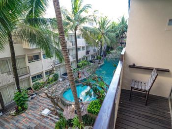 Расположение у отеля хорошее, до пляжа минут 10 пешком. Если хотите веселья, то спокойно можно останавливаться в этом отеле, потому что он располагается на тусовочной улице, где в пешей доступности бары и клубы. В номере было всё самое необходимое: холодильник (пустой), кондиционер, чайник (+ чай, кофе, сахар), маленькие бутылочки воды приносили каждый день (в номере всегда стояла 1,5-литровая бутылка воды, ее можно было купить за 15.000 рупий). В отеле 2 бассейна один возле ресепшена, а один - на крыше с баром (неплохой вид). Полотенца можно получить в спа-салоне. Полотенца в номере меняли каждый день, уборка производилась тоже каждый день.