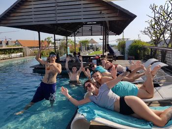 Мало зонтиков у бассейна на крыше, под которыми можно было ветвится в тени.