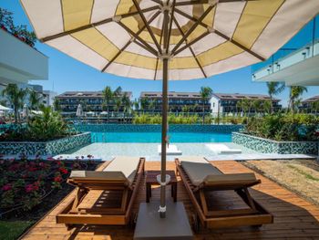 Учитывая, что мы побывали в большинстве премиальных отелях турецкого побережья, завышенных ожиданий не было. В данном случае были приятно удивлены отелем! Очень ухоженная и великолепно спланированная территория! Общий бассейн с множеством различных локаций прекрасен! Очень зелено и чисто. С персоналом нам тоже всегда везло! Концепция питания нам тоже показалась симпатичной, обслуживание по меню с ежедневно меняющейся кухней, - это интересно. Для любителей шведского стола открыт доступ в ресторан соседнего семейного отеля. Там также все неплохо. Рекомендуем!
