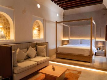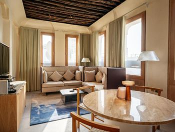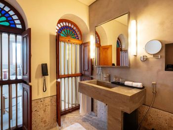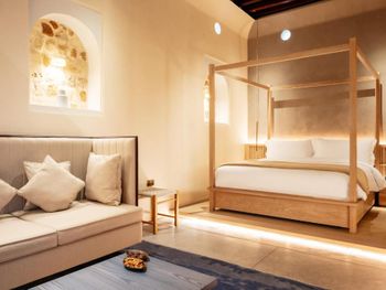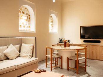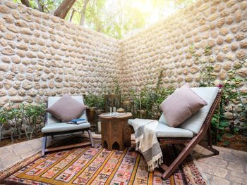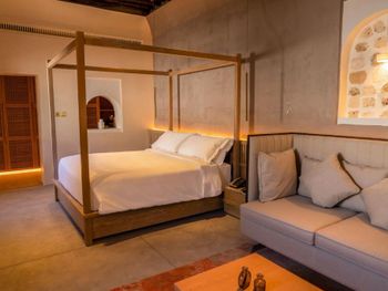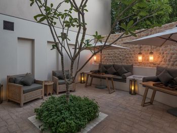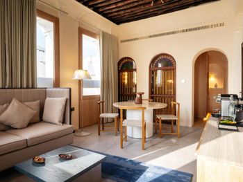 Очень красивый аутентичный отель. Прекрасная кухня. У нас был номер очень большой со своим двориком. Мебель, предметы интерьера, посуда это произведения искусства. При этом отель технологичный и оснащен современным оборудованием. Сам комплекс похож на медину. Причем прямо между домами растут деревья. Местоположение оптимальное доя посещения музеев и прогулок по набережной.