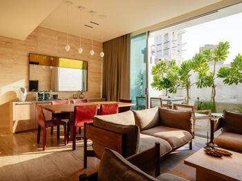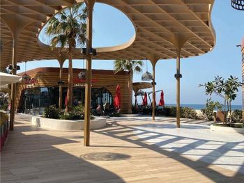 Решили остановиться в этом отеле, прочитав, великолепные отзывы. И нам тоже очень понравилось! Номер большой, красивый, чистый, с собственным двориком- с креслами под пальмой. Ванная комната очень удобная- пол выложен галькой, с хорошей косметикой, как и подобает пятерке.Кровать , как облако,фен (Дайсон),кофе машина, чайник, приятный «комплимент»- огромные финики и грецкие орехи на столе. Завтраки в ресторане по меню: очень вкусные! Соки, выпечка, фрукты, а на свой выбор блюда. Заказывали обед в номер- огромные порции и опять все очень вкусное. Ужинали в японском ресторане, в самом отеле.Отель не на первой линии- на пляж отвозят два раза в день , но на пляже нет лежаков , зонтов, только выдает полотенце водитель; есть хорошие кафе, где можно перекусить и там посидеть в тени. Бассейн: в отзывах писали, что вода с подогревом- нет, холодная.пару часов полежать , да. Не больше.Персонал вежливый, все делают, что бы гости были, как дома. Рекомендуем.