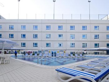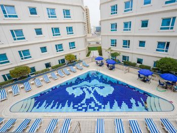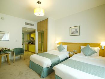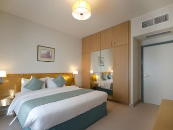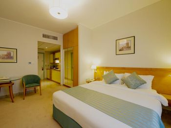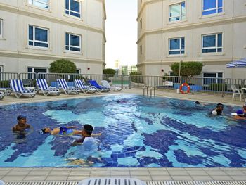 Отель на хорошие 3 звезды, в основном, для тех, кто дожидается своего рейса - до аэропорта 5 минут на авто. Есть бассейн, на первом этаже большой продуктовый магазин. Для тех, кто готовит сам в отеле имеются просторные номера с кухней. При заселении берут 200 дирхамов депозита, который возвращают при выезде. Станция метро в 5 минутах ходьбы. До моря раз в день ходит бесплатный шатл.