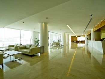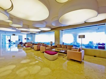 В номере нет утюга, запах в коридорах специфический, похоже, на какие-то восточные ароматизаторы, по мне, так не очень приятный. Отель вблизи аэропорта, удален от бизнес центра города, расположен вне туристической зоны.