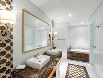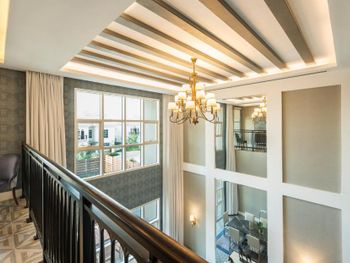 Хороший размер номеров, хорошие большие балконы. Ненавязчивый, спокойный, доброжелательный персонал. Сам отель большой, красивый. По месторасположению - именно нам это было удобно. В ресторане на улице - вкусно, но считаю - дороговато для этих блюд. Постель очень удобная. На территории есть спорт.площадки, бассейн, хоть и не большой.