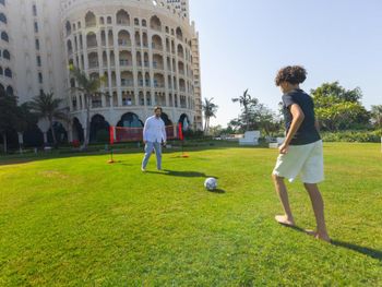 Заселили в номер большой,но на мебели,полу и окнах была пыль,на кухне небыло элементарной посуды,ни вилок,ни ложек,ни тарелок.Мы позвонили в рум сервис и нам принесли на 2 человека 2 тарелки 2 вилки и 1 ложку)).Питание по сравнению с другим отелем,где мы были дорогое.1 раз зашли в бар и я взяла 1 напиток и 1 морожено оплатили около 75 АЕД.В баре когда на пляже были,мы не брали с собой денег и когда я спросила,могу ли я записать заказ на номер комнаты мне отказали..обычно во всех отелях других стран есть такая услуга,расчитаться возможно позже при выезде к примеру,а здесь сказали,если нет депозита ,то покушать в баре и выпить Вы не можете-очень огорчило,т.к. на пляж я обычно наличные с собой не ношу,да и супермаркет находится в 15 мин ходбьы,что было неудобно.В Дубае в другом отеле где проживали было рядом очень много всяких кафе,где можно было сразу покушать,а этот отель находится в глуши..ничего рядом нет..неудобно.В общем в целом я бы не вернулась в этот отель..ещё и с 8 утра стройка рядом выспаться нам не дали..из плюсов только море,бассейн и просторные номера.За 99 дирхам на человека питание считаю не оправданно..приходилось ходить и тратить час чтобы раздобыть еду..носиться с пакетами за продуктами..это не отдых.Ну и убираться приходили после 15 часов,когда мы были всегда в номере и конечно же уходить с номера мы нехотели и поэтому просили,всё самое необходимое,а за 10 дней нам пол ни разу не помыли..неприятно.