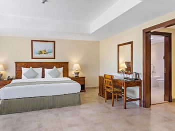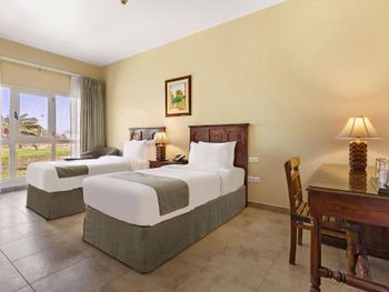 Комната была не плохая с видом на гольф, уютно и чисто. Пляж красивый с белым песком, но лежаки отвратительные.