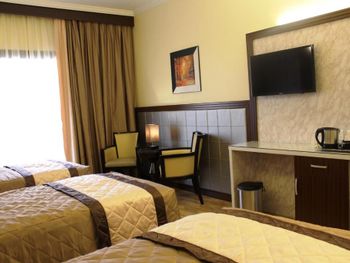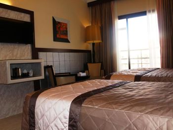 Начиная со входа уже чувствуется вонь и по всем этажам стоит невыносимый запах. По утрам нет воды вообще. Карточка ключ от двери не работает, каждый раз приходится звать уборщика, чтоб открыл дверь. Кондиционер вообще не регулируется, либо работает и тебе приходится спать под 10 одеялами, либо отключается и жара невыносимая. Забудьте о комфортной температуре. И к тому же они в плесени. Полотенца выдают только по требованию и они очень старые жёлтые противные на вид, со времён войны остались кажется. Розетки не работают. На 9 этаже какое-то африканское общество, где каждую ночь до утра устраивают концерт или какой-то африканский обряд, то-ли свадьба не понятно. Настолько громкая музыка, поют , орут и в барабаны бьют, что не возможно спать вплоть до 6 этажа. При выборе номера выбирали двухспальную кровать с видом на залив, а выдали комнату с видом на улицу и с двумя одноместными кроватями.