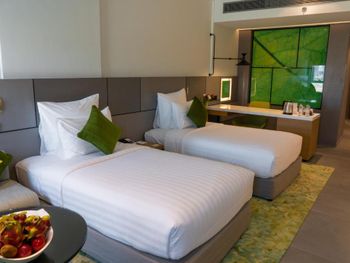 Нет холодильника в номере, вода из под фильтра в многоразовой таре только одна бутылка на двоих, подушки ужасные, кровати не удобные, шумоизоляция - все слышно и очень шумно, охрана в бассейне - Daniel - очень грубый к гостям, мало лежаков у бассейна!