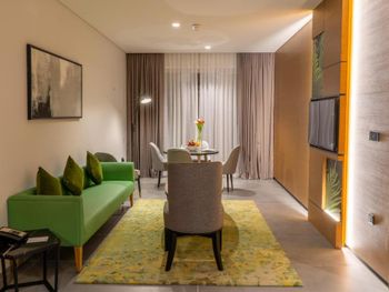 Хороший персонал, быстро заселили раньше времени. Повысили категорию. Бассейн на крыше с супер видом на бурдж халиф, но дверь туда закрывается в 20:00 и полюбоваться ночным городом не получится. Хороший тренажерный зал. Хорошая сауна и паровая баня. Персонал очень старается, все доброжелательные.
