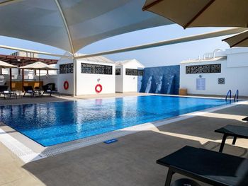 Долго выбирал, искал поближе к пляжу Ламер. Выбор полностью разочаровал. 1. После бронирования вам от отеля напишут, что готовы ответить на вопросы и учесть ваши пожелания. Написал, что хочу номер с балконом. Мне ответили: не вопрос, учтем ваши пожелания, если номера при заселении будут - дадим. По факту на месте никто про это не вспомнил, при уточнении сказали, что номеров моей категории с балконом не бывает вообще. 2. При заселении вас попросят внести депозит за этот «шикарный» номер. 200 дирхам))) Нигде до этого информации о депозите нет. На основании чего - тоже не объясняют. Просто говорят - так надо. После пребывания в номере я так и не понял что там такого ценного, что аж надо брать депозит. Депозит берут, а вот бумагу о том, что берут депозит дадут только если вы попросите. 3. Номер у нас был совмещенный. Мы специально брали его сразу на семью из 4х человек. При входе в номер двери совмещения оказались закрыты. Ждали минут 10 когда придет товарищ с ключом и раскроет их. Когда ты уставший с самолета - стоишь и недоумеваешь почему нельзя было к приезду открыть двери заранее. 4. Сами двери совмещенного номера сжирают площадь у обоих номеров в открытом состоянии. Вам просто постоянно придется лавировать и обходить их. 5. Вид из совмещенных номеров - это вид прямо в соседнее здание, с балконами где вы видите проживающих напротив как на ладони. Ну ладно, это было в какой-то степени ожидаемо. 6. Обеды/ужины - это кошмар) Каждый день вы будете есть рис, курицу, булочку, пару салатиков и несвежие фрукты) В один вечер приготовили пасту. Все дети были рады XD но недолго, оказалось она острая)О если б я знал, что с этим всё так плохо, не брал бы. 7. Номер убирали в разное время, при том, что нас почти целый день не было мы постоянно встречали сервис при возвращении. Могут даже в 21 вечера прийти. Пододеяльник заправляют небрежно. Это был самый худший отель в другой стране в котором я когда либо был. Пожалел, надо было взять что-то приличнее и подороже.