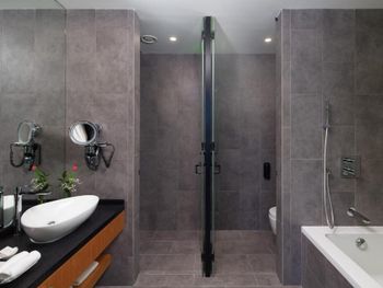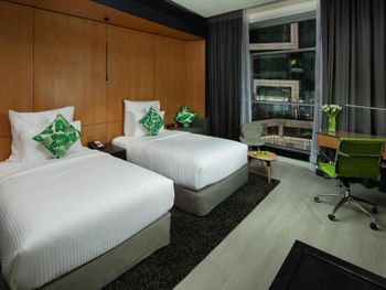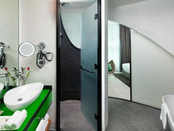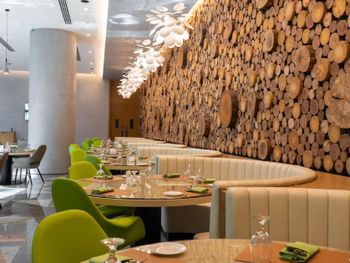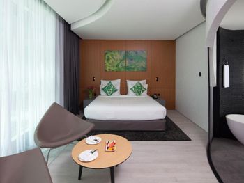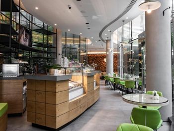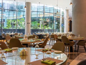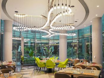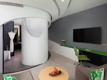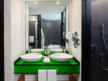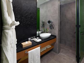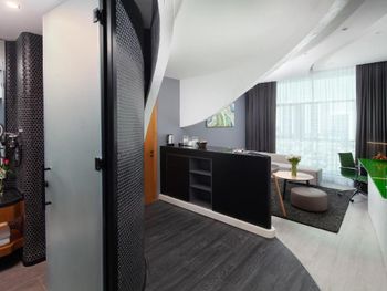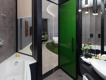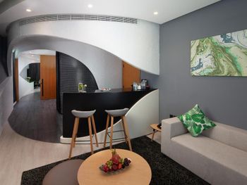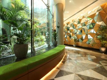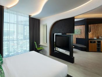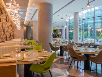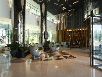 отель красивый и стильный. номера огромные с очень удобной кроватью. ванная комната тоже большая. метро недалеко. до центра минут 30 езды. до экспо 1 час. прямая красная ветка. вообще, в целом отель отличный, но ему лоска что ли не хватает. вроде всё красиво, но в углах пыль клубами, плинтуса так, мне кажется, совсем тряпки ни разу не видали. окна такие грязные, что скоро солнечный свет пропускать перестанут. хотели попить кофе в саду. ну, как бы сад - фишка этого отеля. а там сесть не возможно, что на столах, что на стульях пылища с палец толщиной, рисовать можно. поэтому в саду народа никого. отель неплохой, но видимо управленца нет хорошего. я как понимаю, отель новый и пока не уставший, поэтому жить можно, но такими темпами скоро этот отель придёт в полное запустение и покроется плесенью с паутиной
