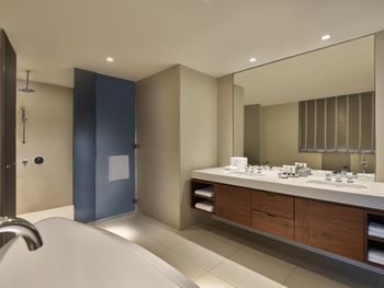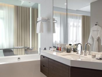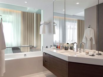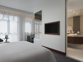 Wall-mounted satellite LCD TVs, free bottled water and free coffee and tea facilities are standard in all rooms. Guest bathrooms include robes, slippers and free amenities, and 24-hour room service is available.