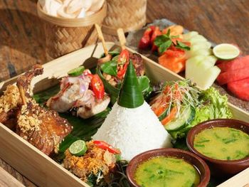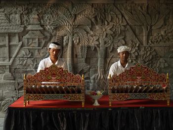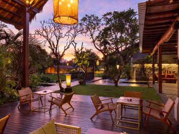 The contemporary Balinese-style rooms feature private terraces overlooking natural surroundings, flat-screen TVs, and well-appointed bathrooms with modern amenities. Indonesian and international cuisine is served at the on-site Brasserie Restaurant, with room service available upon request. Live music performances by Balinese musicians are occasionally hosted at the resort.
