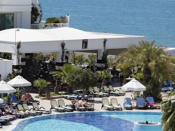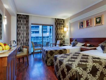 За те деньги, которые заплачены за проживание в этом отеле,где «все включено»: в номере даже нет тапочек, шампуня, шапочки и т. д. Присутствует только мыло в настенном диспенсер и в душевой кабине гель. Никаких элементарных принадлежностей! Вначале подумала, что горничная забыла положить и пошла спрашивать в ресепшен. Получила ответ - в отеле такая политика. Напитки в баре , которые включены - только турецкого производства. Жила в отеле 2 дня. Номер не то что не убирали, даже мусор не вынесли. Интернет только в ресепшене и баре под ним. Даже в ресторане платный. Заявляли, что есть во всех общественных местах, но не уточнили, что за дополнительные деньги. Сейф в номере тоже за дополнительную оплату. Бар на пляже неудобно расположен. Не советую. За меньшие деньги ( за две трети от стоимости здесь) в другом отеле получила отличный комфорт и сервис.
