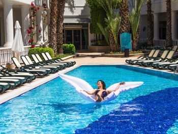 Отель Alba Queen предлагает своим гостям современные и просторные номера. Отель находится в самом центре города Чолаклы в 6 км от Сиде. Отель располагает собственным пляжем. На территории отеля есть бассейны с водными горками. Обслуживание номеров предоставляется круглосуточно.