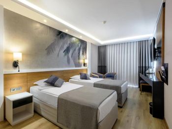 Отдыхали семьёй в мае в этом замечательном отеле, остались всем очень довольны. У нас был хороший семейный номер, в отеле отличная территория, много зелени, все ухожено. Кухня отличная, разнообразная и очень вкусная! Хорошая анимация, много активностей в которых принимали участие: волейбол, большой теннис, теннис, вечерние шоу. Детям понравились горки в бассейне и батут. Пляж шикарный: песок и удобный вход в море. Всем остались довольны, надеюсь вернёмся ещё!
