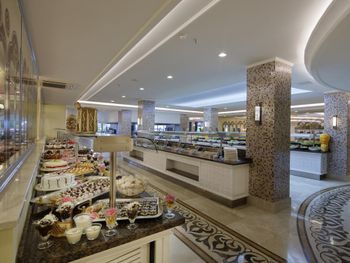 В ресторане отеля гостей ожидает выбор блюд турецкой и мировой кухни по меню, а также "шведский стол". Завтраком, обедом и ужином можно насладиться как в помещении, так и на открытом воздухе на террасе.