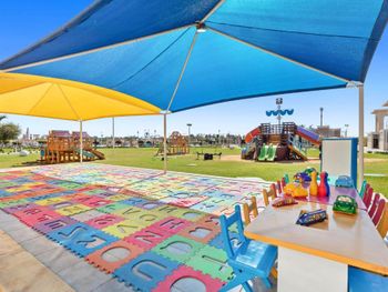 Очень много мелких бассеинов для малышей на любой вкус и цвет. Очень удобно было взять в баре закуски с коктейлем и наблюдать с лежака за любимым чадо, зная, что она там не утонет) у каждого бассеина (даже 30см глубины) есть спасатель, который РЕАЛЬНО смотрит и следит. Ни разу не видела, что бы кто-то из них залипал в телефоне. Когда моя дочка каталась на катамаране и у нее что-то не получалось, спасатель сразу подбегал и помогал ей. Вообще супер-молодцы.