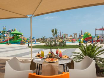 Очень кратко: Огромная, яркая территория. Про аквапарк можно прочитать в описании. Дети в восторге. Есть бассейны с подогревом. Интересная анимация для детей. Отдельно можно отметить качество питания. Все на высшем уровне. Персонал говорит на разных языках. Разнообразие блюд отличное. Подают королевские креветки, клубнику. Очень внимательны к каждому клиенту. Особая благодарность Metwaly и Shady. Они делают все, чтобы питание прошло максимально комфортно. Сложилось ощущение, что менеджмент отеля работает круглосуточно. Они всегда на связи. Спасибо Виктории и руководителю службы расселения (имя к сожалению не запомнил). Также скажу, что в отеле очень чисто. Территорию постоянно чистят. До моря трансфер каждые 20 минут. Пляж в очень спокойной бухте. Волн нет никогда.