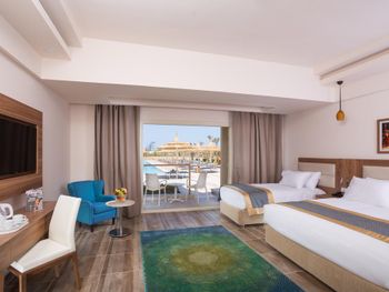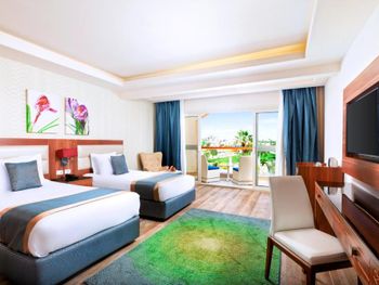 В этой ценовой категории это лучший для меня отель, каждый год стараемся сюда приехать. Новая современная территория. Большой и современный аквапарк. Хорошие рестораны. Большие и комфортные номера. Несколько подогреваемых бассейнов. Можно также пользоваться всей территорией и ресторанами четвёрки с её аквапарком. Есть вечерняя анимация плюс шоу Неверленд. Есть трансфер на пляж, примерно каждые 30 минут. Отличный персонал, на ресепшен, в ресторанах, барах. Хорошая уборка, наш уборщик Мохамед старался. Довольно близко старый город. Пляж в безветренной бухте. Замечательный лобби бар.
