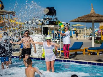 Отличный отель, немного подуставший, но нам это не мешало отдыхать. Гостеприимный персонал, хорошая разнообразная еда. Очень большо аквапарк. Есть возможность посещать аквапарк в Аква Блю. Отличное место для отдыха с семьей