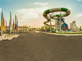 Большая территория! Классные горки, много персонала. Разрешен доступ на территорию двух отелей. Детям очень понравилась крутая VR- комната на территории 4х-звездочного отеля. Нам очень понравилось огненное шоу.