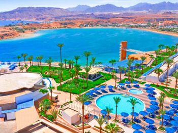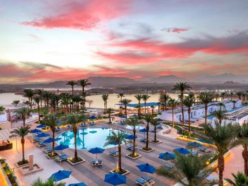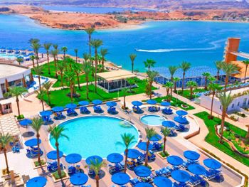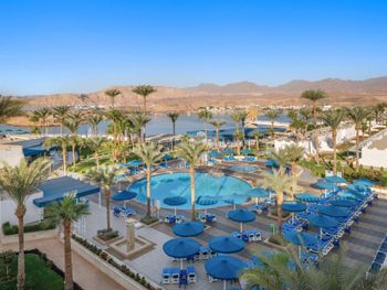 Situated on a cliff of Ras Om El Seid, this beach resort offers panoramic views of the Sinai Mountains. Facilities include a private beach, multiple pools and a tennis court.