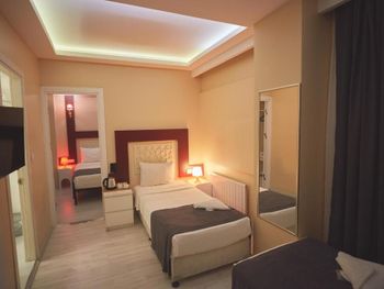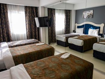 Очень маленький номер для четверых, но так везде в Стамбуле. Не очень чисто в номере. Нет балкона.