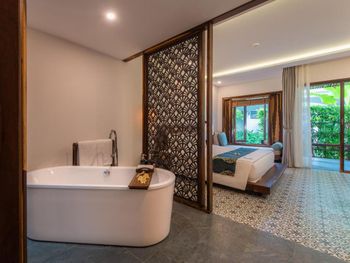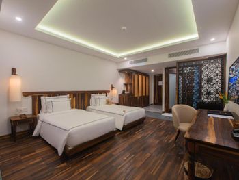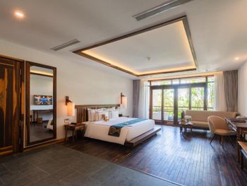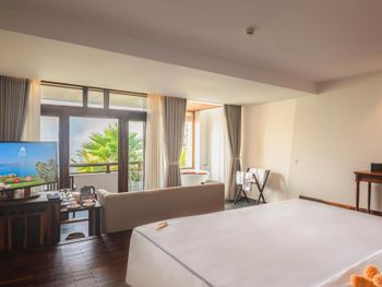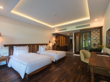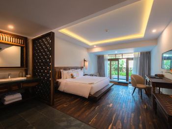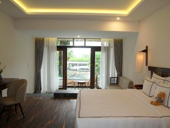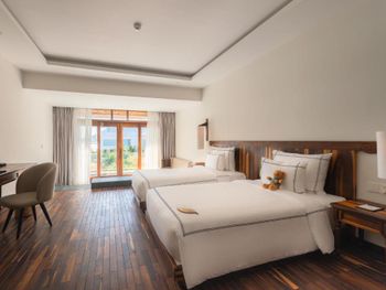 Отдыхали семьей с 6 по 13 декабря 2025 года. Бронировали 2 номера - вилла с видом на сад и премьер Кинг с видом на море- повысили категорию виллы бесплатно до номера Премьер Кинг с видом на море- было очень приятно. Персонал отеля выше всяких похвал. Есть русскоговорящий менеджер Саша. Отель предлагал бесплатно разные развлечения - мастер класс по приготовлению вьетнамских блинчиков с морепродуктами, дегустацию кофе, дегустацию пива ( в отеле есть своя пивоварня), занятие с личным тренером йогой. Ощущение было, что ты дома- все по семейному уютно и дружелюбно. Нам очень понравилось! В основном в отеле русские и корейцы. Отель расположен на севере Ня Чанга, немного далеко от центра, но на такси ( заказывали через приложение Grab) очень быстро 5-10 минут можно было добраться до магазинов, ресторанов и прочего. Ездили на минеральные источники - они в 15 минутах от отеля, на экскурсию по городу, к сожалению дорога в Далат была закрыта. Также брали в прокат велосипеды ( с 8 до 12 прокат бесплатно) и ездили на соседний пляж у отеля Либера, до него 5 минут на велосипеде или 15 минут пешком, там же и ближайший магазин, где можно купить продукты, товары первой необходимости. Завтрак в отеле очень вкусный, каждый день что- то новое из блюд, особенно понравились яйца жареные в чугунной сковороде с добавкой мяса, зелени и вкусного соуса- это было нечто! В отеле 2 бассейна - оба очень комфортные и красивые, лежаков достаточно. Есть небольшой пляж, каждый день купались в море, но заход с небольшими камушками и песком. Хочу отметить, что отель очень достойный, всем рекомендую в нем побывать! Мы остались отдыхом в отеле очень довольны, с удовольствием приедем снова)