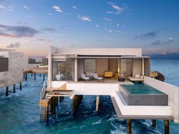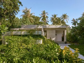 виллы , стиль в котором выполнен отель , отель на настоящим острове ( не насыпной ) достаточно хороший риф для снорклинга