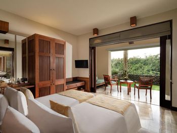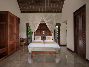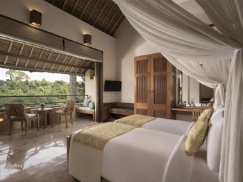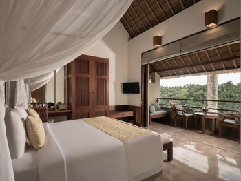 Современные номера отеля оформлены в традиционном балийском стиле и оснащены кондиционером. С просторного балкона открывается вид на окружающие вулканы и реку. В числе удобств телевизор с плоским экраном, небольшой диван и мини-бар.