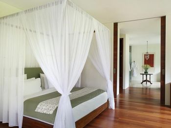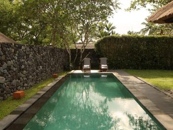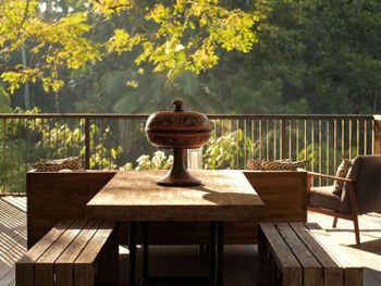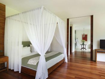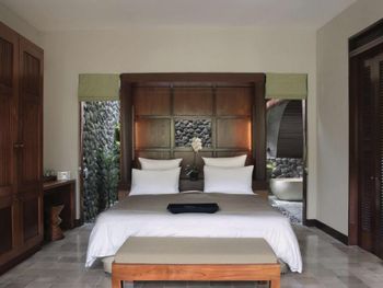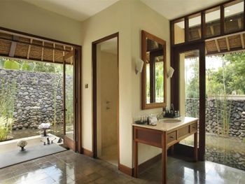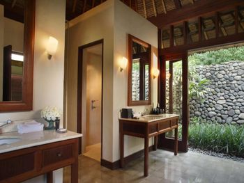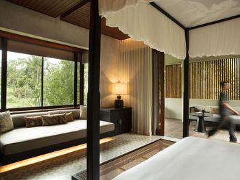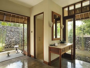 Современные номера отеля оформлены в традиционном балийском стиле и оснащены кондиционером. С просторного балкона открывается вид на окружающие вулканы и реку. В числе удобств телевизор с плоским экраном, небольшой диван и мини-бар.
