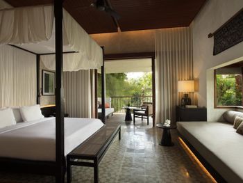 Потрясающе красивое месторасположение! Вид на холмистые джунгли шикарный, по территории бегают семьи обезьянок, бассейн отличный, ужин вкусный (около 9 тыс руб на 2 взрослых, 1 ребёнок), балийские танцы за ужином, йога на рассвете (бесплатная) - сбывшаяся мечта!