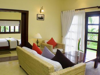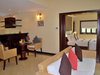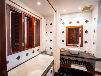 Featuring French-colonial architecture, elegant guest rooms are fitted with dark wood furnishings and they open out to the private balcony offering views of the garden or ocean. Spacious units have a personal safe, desk and a cable flat-screen TV. Selected units have a private pool. Attached bathroom has shower facility, a hairdryer and free toiletries.