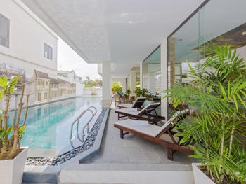 Огромный минус - указана частная пляжная зона, но она давно заброшена. Там просто отвратительная свалка мусора. И тропинка к воде ведёт через жуткие мусорные вонючие завалы и груду строительных отходов. Был в аренде байк. Уезжали купаться в другие места. И ещё, важное, не огромный минус, но всё же: отелю такого уровня стоит обратить внимание на то, что высушить пляжные полотенца, купальники невозможно. Это никак не предусмотрено. Мокрое просто некуда деть. (Хоть и было с собой не по одному купальнику, но это не спасало, приходилось даже надевать полу-мокрое, что, конечно, не очень приятно.).