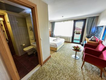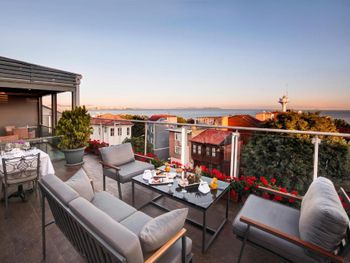 Утром в отеле накрывают роскошный завтрак «шведский стол» с горячими и холодными блюдами. Гости отеля могут совершить прогулку по историческому району Султанахмет и посетить музей-дворец Топкапы, Гранд базар и другие известные достопримечательности, а по возвращении — провести время на террасе на крыше отеля Almina, с которой открывается вид на Мраморное море. Отель находится в 54 км от аэропорта Стамбул.