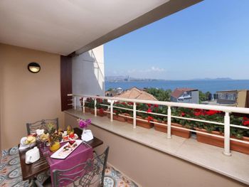 скудные завтраки, плохая уборка в номере, точне практически полное ее отсутствие, вид с балкона номера полулюкс.