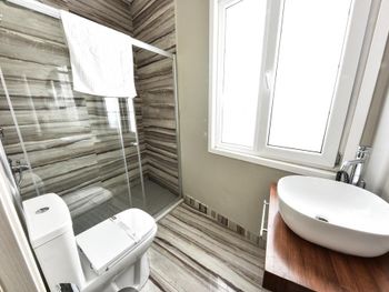 Отношение персонала. Жил 2 ночи. В первый день на меня упала дверь в душе, стекло было по всему телу, с ранами к сожалению. Не переселили и сейчас пытаются взыскать почти 10К, дескать я ее сломал, хотя претензии к двери были сразу