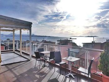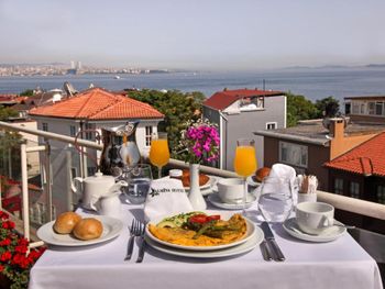 Единственный плюс этого отеля- русскоговорящий сотрудник Расул на ресепшн, который понимал, слышал и делал, что хотят гости. Отель расположен близ старого города. Вид на Босфор с террасы.