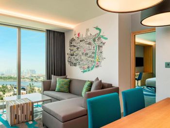 В номере также установлена специализированная станция, работающая по принципу plug and play, с помощью которой можно подзарядить любые электронные устройства. Кроме того, она подключена к 49-дюймовому ЖК-телевизору, что расширяет возможности для работы и игр. Многофункциональные помещения для проведения мероприятий позволяют проводить деловые совещания и неофициальные встречи. Трансфер от отеля до пляжа Ла-Мер и международного аэропорта Дубай (DXB) предоставляется 3 раза в день.